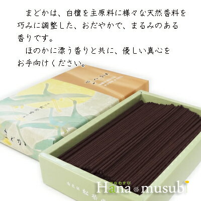 『まどか』は、白檀を主原料に様々な天然香料を調整した、おだやかで、まるみのある線香です。