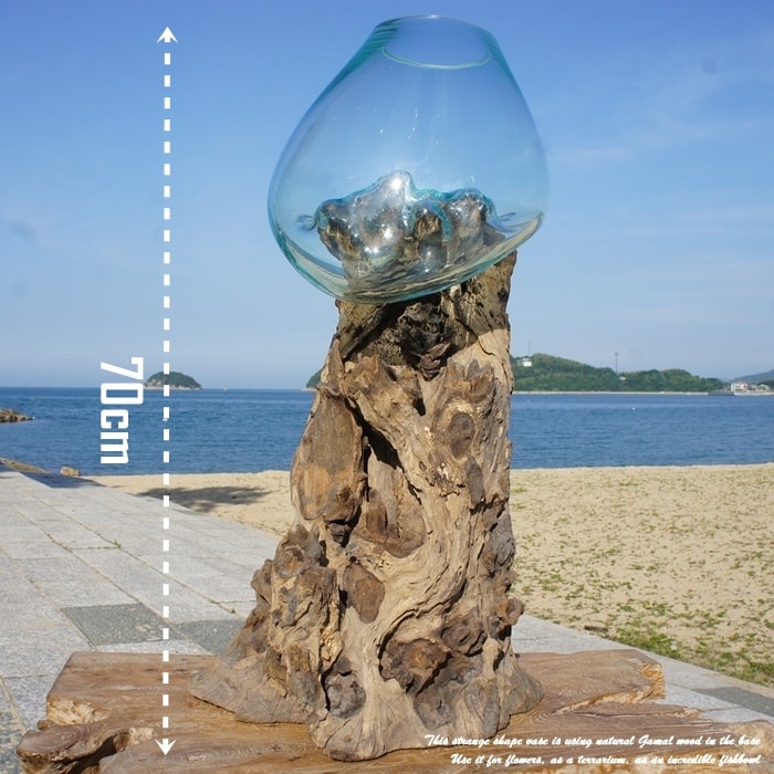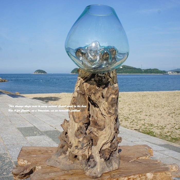 一点物 流木ガラス オブジェ 特大 LH70 花瓶 アクアリウム テラリウム フラワーポット 金魚鉢 メダカ水槽 バリ島 アジアン雑貨 ポプリ入れ 容器 器 リサイクルガラス オブジェ かわいい リサイクルウッド 買い回り ポイント消化 業販 卸売可 父の日