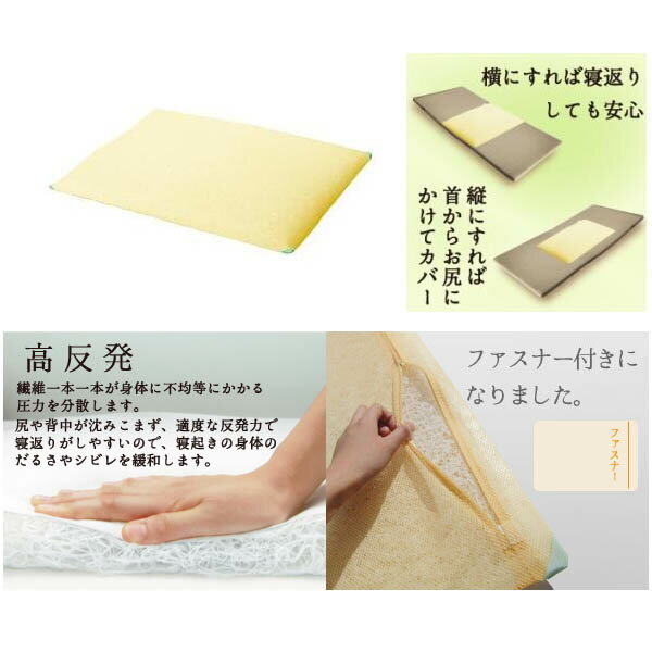 ・タテに敷くと背中から腰にかけて、広い範囲をサポート、ヨコに敷くと寝返りを重点的にサポート。